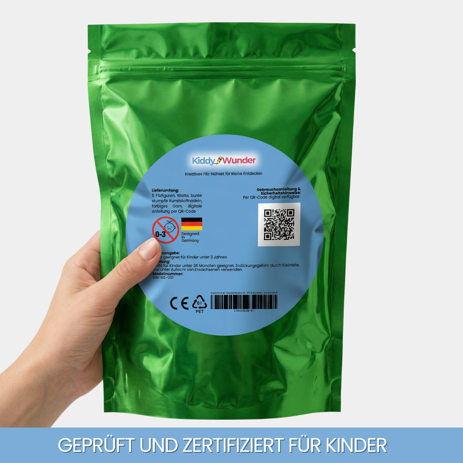 The materials and needles are specially designed for children – no sharp points, no dangerous small parts. This allows your child to be creative without risk.